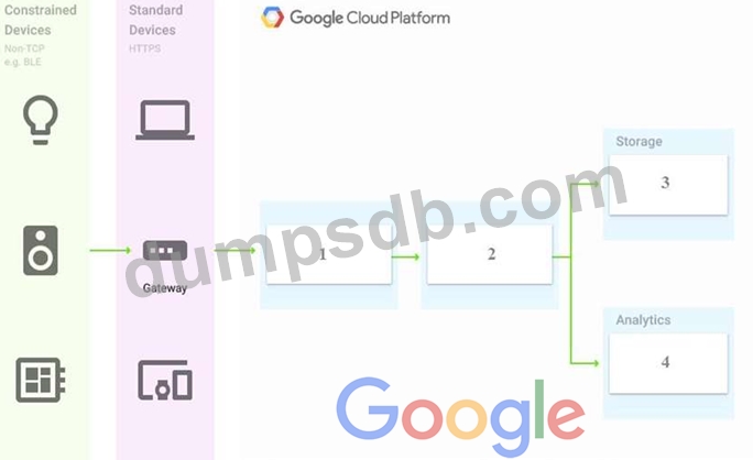 a. Which Google Cloud Platform services should you put in boxes 1,2,3, and 4?