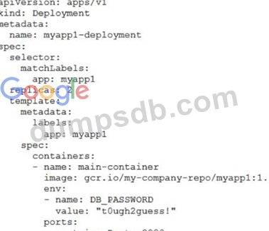 You need to refactor this configuration so that the database password is not stored in plain text. You want to follow Google-recommended practices. What should you do?