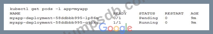 You check the status of the deployed pods and notice that one of them is still in PENDING status: