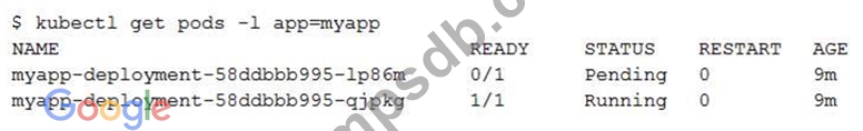 You create a Deployment with 2 replicas in a Google Kubernetes Engine cluster that has a single preemptible node pool. After a few minutes, you use kubectl to examine the status of your Pod and observe that one of them is still in Pending status: