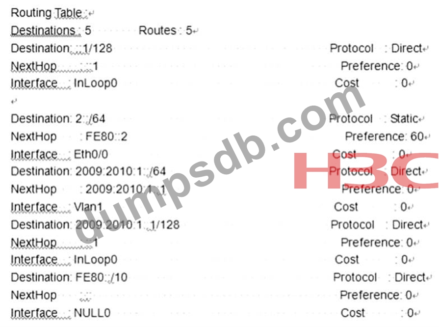 The following is the output of the displaipv6 routing-table command executed on a router: