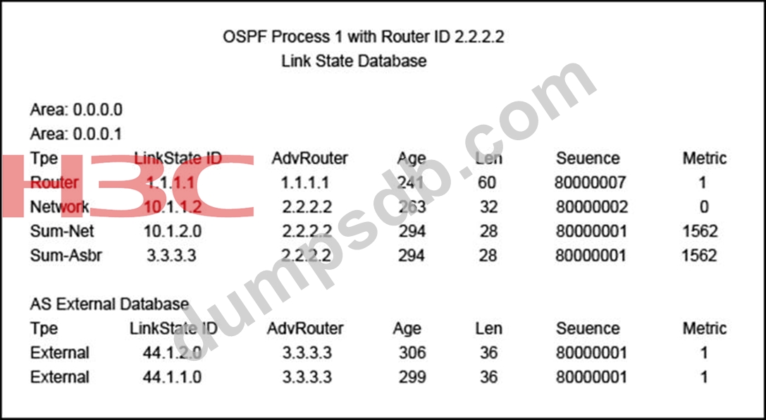 After executing the displaospf lsdb command on the MSR router RTA, the router output is as follows: