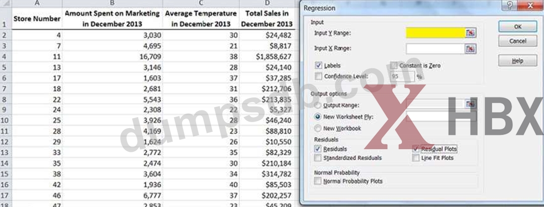 The owner of a chain of convenience stores is concerned that store-level marketing expenditures are not increasing its stores' sales. In addition, the owner believes that an especially cold winter has caused sales to drop. The owner collects data in Dec. 2013 for a random sampling of 50 stores in the Midwestern region of the United States; a portion of this spreadsheet is given below.
