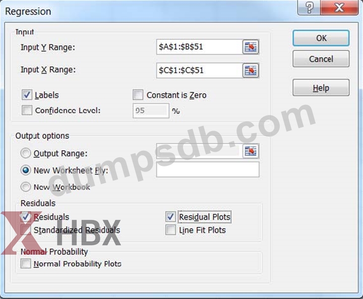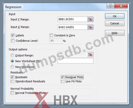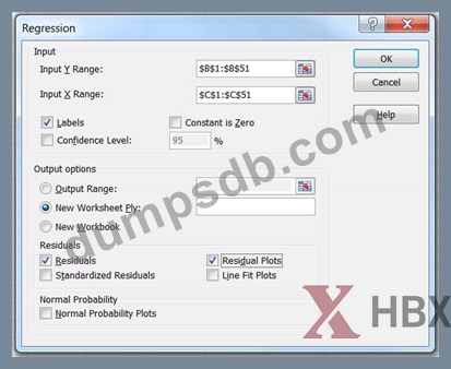 Which of the following Excel dialog boxes correctly runs the regression described? A)