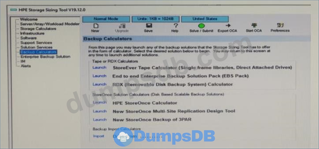 You plan to use the HPE Storage Sizing Tool for an HPE backup environment, as shown in the exhibit instead of manually entering all gathered information, you want to use the import option for fast and efficient sizing of a backup environment.