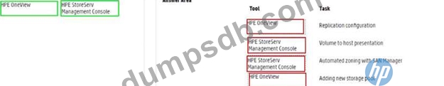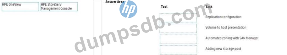 For HPE Primera, match each task with the management tool that can be used to perform it.