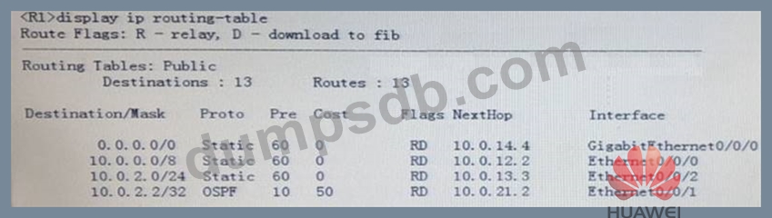The output information of the router R1 routing table is as follows. Which of the following statements are correct? (Multiple Choice)