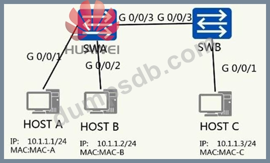 As shown in the following figure, all hosts can communicate normally. What is the correct relationship between the SWBMAC address and the port?