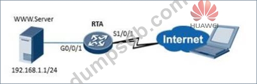 Refer to the graphic. A web server in a private network is required to provide HTTP services to public users. The network administrator is required to configure NAT on RTA. Which configuration should be used?