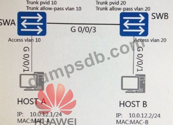 As shown in the following figure, the ports connected to the host of Switch A and Switch B belong to VLAN 10 and VLAN 20 respectively. The port type of the switch is Trunk and the PVID is 10 and 20. Which of the following statements are correct? (Multiple choice)