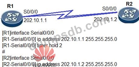 According to the following topology and configuration, R1 and R2 are connected through low-speed serial cables and PPP is used to encapsulate data link layer packets. When the Holdtime values of R1 and R2 are different, PPP negotiation and communication fail.