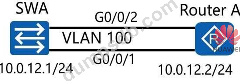 As shown in the following figure, switch A and router A are connected through two links. The two links are aggregated in manual load balancing mode. The aggregation port number is 1. The aggregated link needs to carry VLAN tag 100. Switch A uses the trunk link.