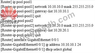 Refer to the configuration output. Following configuration, a host is connected to the interface Gigabit Ethernet 0/0/1 of the router. Which IP address will the client obtain?