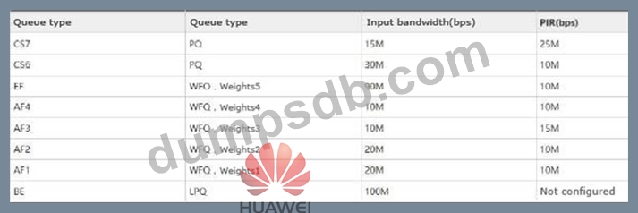 Assuming that the port shaping rate is 100 Mbps, the input bandwidth and configured PIR of each service of the interface are as follows. Then, after the first round of scheduling, what is the bandwidth allocated by the EF queue?