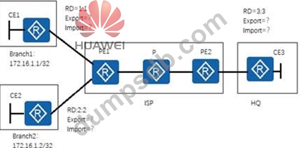 As shown in the figure, in the hub&spoke multicast mode of MPLS bgp VPN, in order to realize that the branch can only communicate with the headquarters, the branches cannot communicate with each other. Which of the following schemes can the RT be set to?