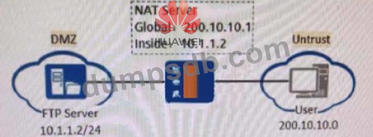 As shown in the figure, a NAT server application scenario is configured when the web configuration mode is used.