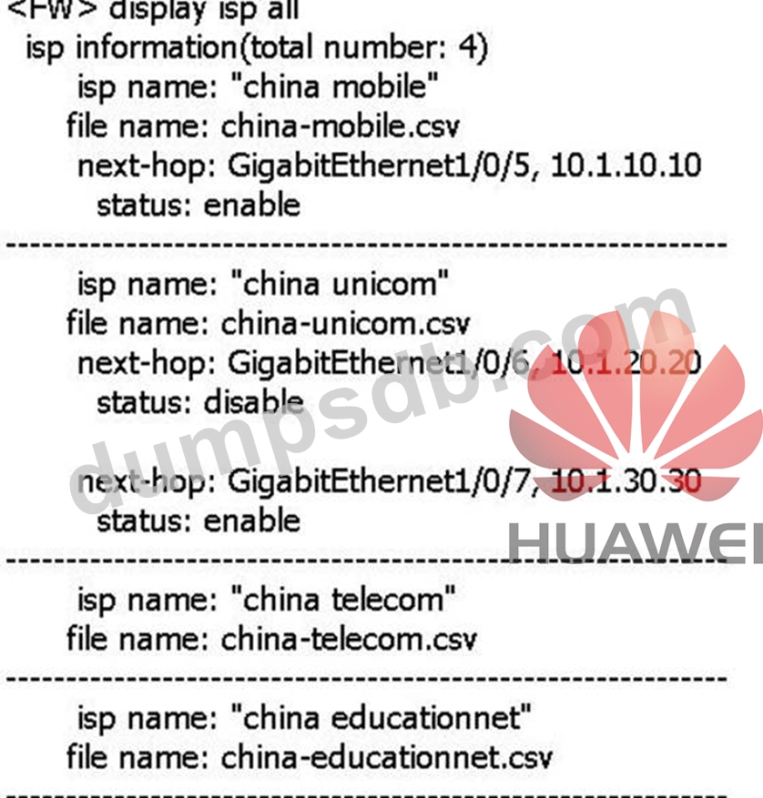 Based on the following ISP routing configuration information on a firewall, which of the following options are correct? (Multiple choices)
