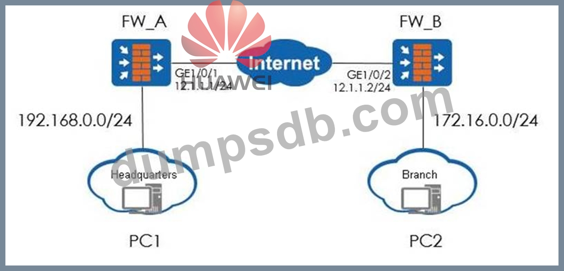 An enterprise branch and headquarters need to be able to transmit multicast packets. As shown in the figure, FW_B is the branch gateway, and the FW_B is used to establish an IPSec VPN with the headquarters (pre-shared key authentication). Which parts in the following configuration on FW_B is required? (Multiple choices)
