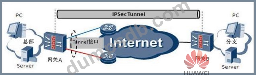 IPsec tunneling is used as a backup connection as shown below: