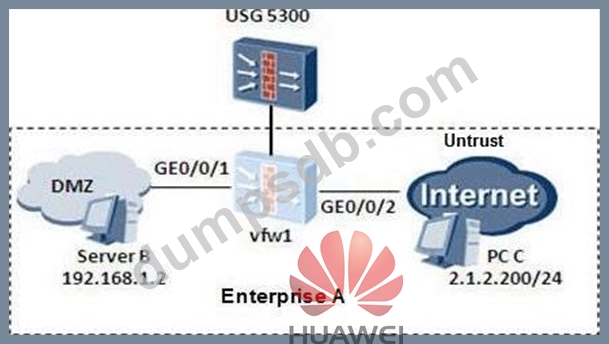 The following virtual firewall networking, USG provided outwardly rough business, VPN instance vfw1 coarse A, to the enterprise network diagram below.