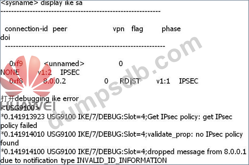 An administrator views the status information and IPsec Debug information as follows: