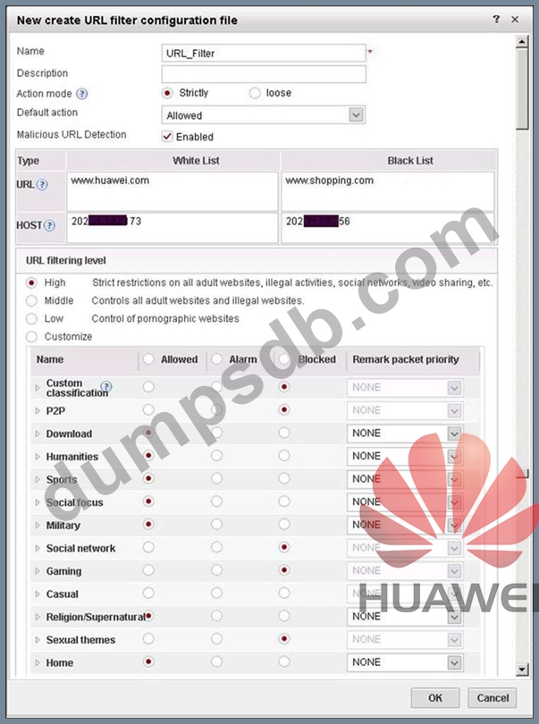 The following figure shows the configuration of the URL filtering configuration file. Which of the following statements is true about this configuration?
