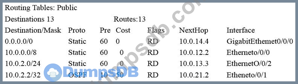 The output information of the router R1 routing table is shown in the figure. Which of the following statements is correct? () (Multiple Choice Questions) R1display ip routing-table Route Flags: R-relay, D-download to fib