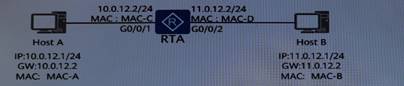 In the network shown in the figure below, the host has an ARP cache, and host A sends a packet to host B.