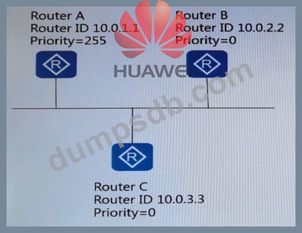 In the network shown in the figure below, when the OSPF neighbor status is stable, what is the neighbor status of Router B and Router C?