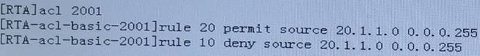 Complete the ACL configuration shown in the figure on the router RTA, which of the following description is correct?