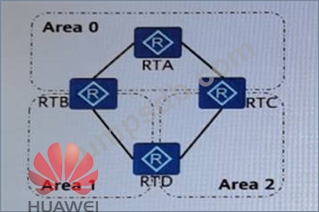 The network structure and OSPF partition is shown in the following figure, in addition to RTA, router RTB, RTC and RTD are ABR routers.