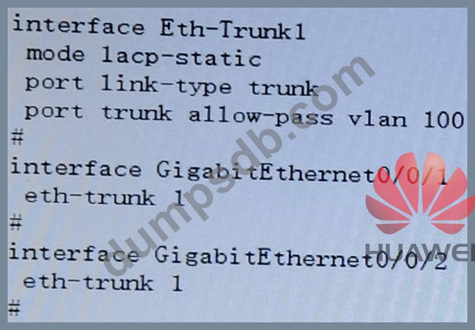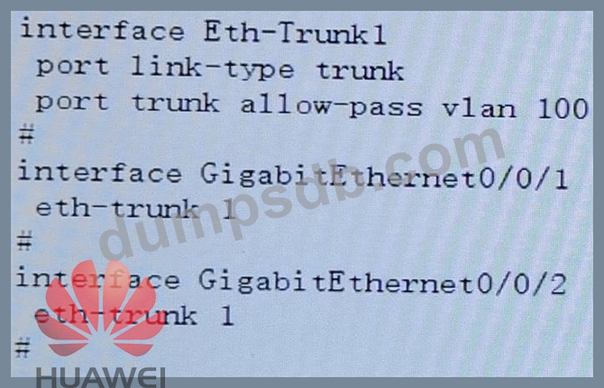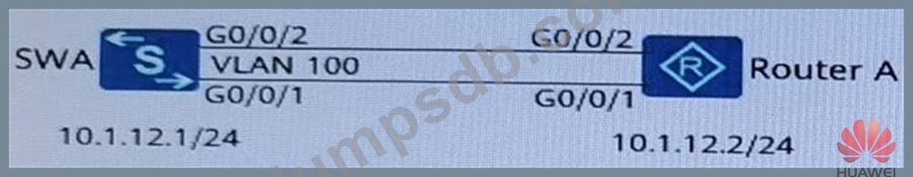 In the network shown in the figure below, switch A and router A are connected through two links, and the two links are aggregated in manual load sharing mode. The aggregated port number is 1, and the aggregated link performs data when forwarding, you need to carry VLAN TAG 100. Switch A uses Trunk link. Which of the following configurations should be used for Switch A?