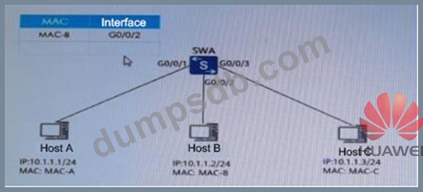 As shown in the figure below, suppose the MAC address table of SWA is as follows. Now host A sends a data frame with the destination MAC address MAC-B. Which of the following statements is correct?