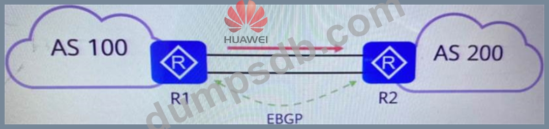 As shown in the figure, on the R1 router, network administrator A can control the path of the traffic leaving AS100 after modifying the Local Preference value of the routing entry sent to R2 through the routing policy.
