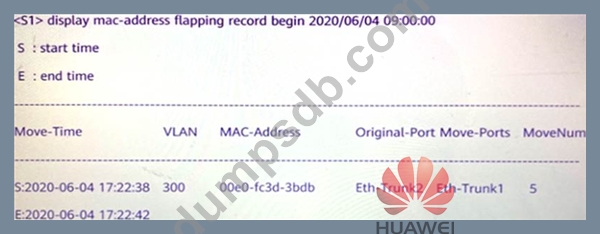 According to this figure, it can be known that in VLAN 300, on 2020-06-04, from 17:22:38 to 17:22:44, how many MAC flaps does the 00e0-fc3d-3bdb have?