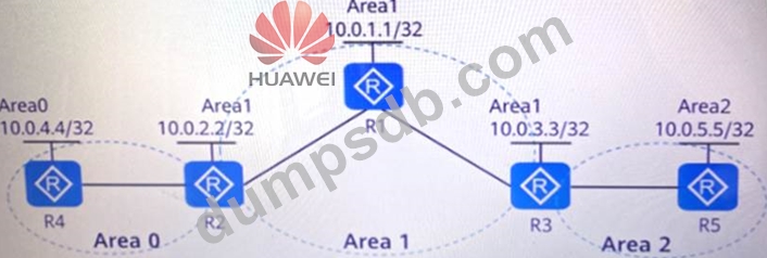 As shown in the figure, OSPF is enabled on all interfaces of the router. The ip address marked in the figure is the IP address of the loopback0 interface. The Loopback0 of R1, R2, and R3 is advertised in area 1, and the Loopback0 of R4 is advertised in area 0, Loopback0 of R5 announces which of the following functional addresses in area 2 can ping each other?