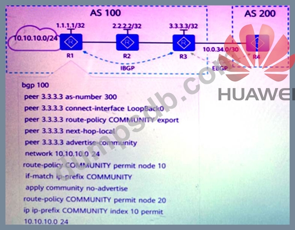 Assuming that the neighbor relationship between BGP routers has been established successfully, the configuration on R1 is as shown in the figure.