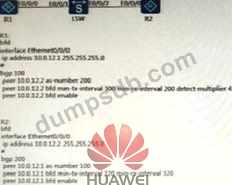 As shown below, RI, R2 establish EBGP neighbors, and once turned on, the BFD detection function, the following statement is correct?