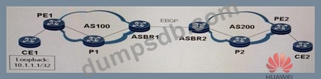 ASBRs communicate with each other through EBGP. the loopback interface address of CE 1 is 10.1.1.1/24