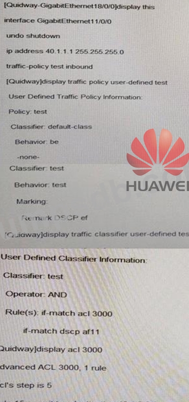 As shown in the figure, complex traffic classification is configured for RTA's upstream GigabitEthernet 1/0/0. The QoS is configured as follows: