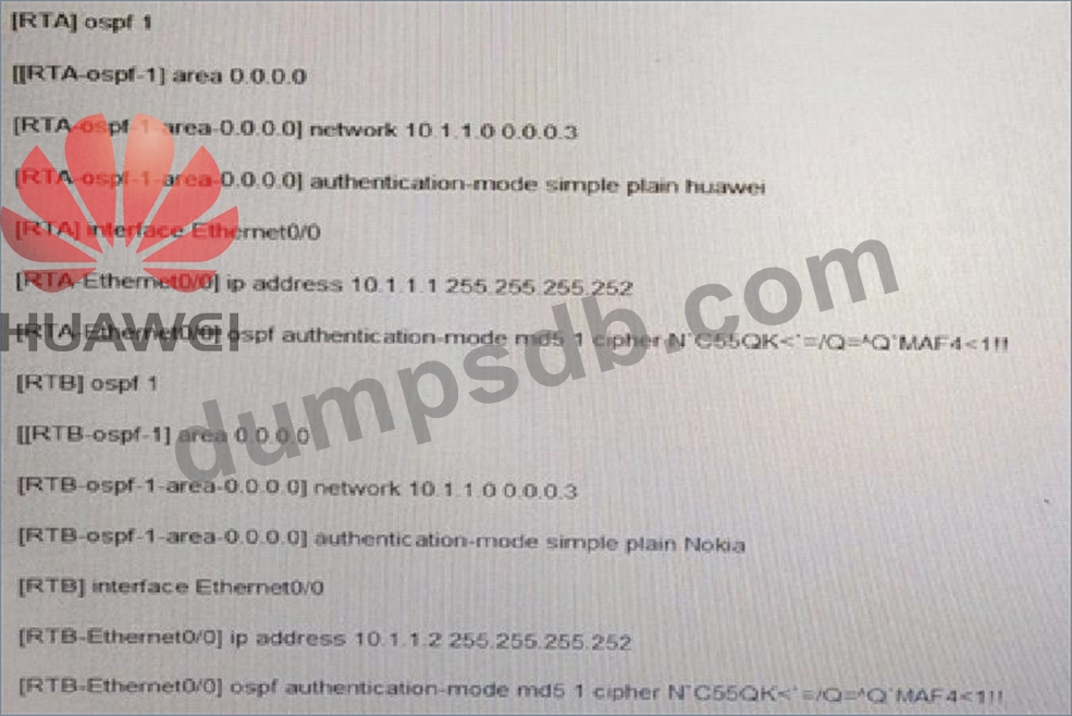 An Ethernet cable connects RTA to RTB through Ethernet 0/0.the OSPF neighbor relationship can be established without enabling the OSPF authentication function is enabled, Which of the following statements about the OSPF relationship between RTA and RTB are true?