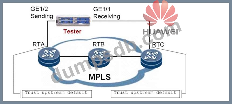 As shown in the figure, the DiffServ model is deployed in E-LSP mode on the MPLS network. A tester connects to GE interfaces of RTA and RTC on the edge of the MPLS network through GE links. The trust upstream default command is configured for interfaces on the IP access side of RTA and RTC. When the tester sends IP packets with DSCP values 10, 12, and 14,the DSCP values of IP packets received at the receiver side are supposed to remain unchanged. However, the DSCP values of all received IP packets are 10. In this case, which of the following statements are true? (Default mapping is configured between the EXP and DSCP values on each router.)
