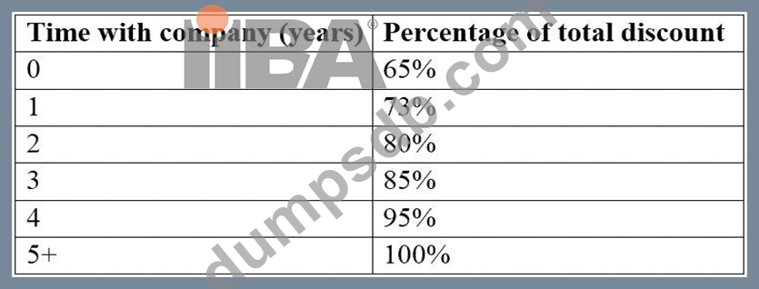 The percentage of the maximum possible discount available to the customer is adjusted based on time with the company: