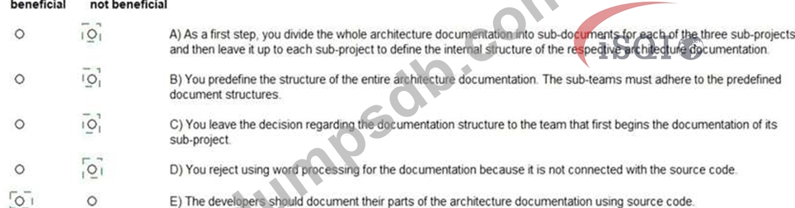 You are responsible for the documentation of the software architecture of a large development project. The project consists of three teams, each with its own architect, but with you as the person having overall responsibility of the entire project's software architecture.