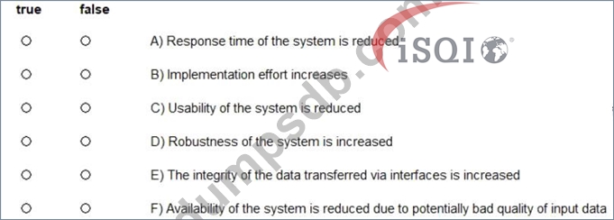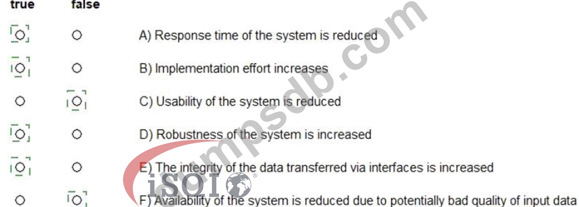 Concerning external interfaces, Postel's law suggests: "Be conservative in what you do, be liberal in what you accept from others." Assume that Postel's law has been consistently applied in your system. (Assign all answers.)