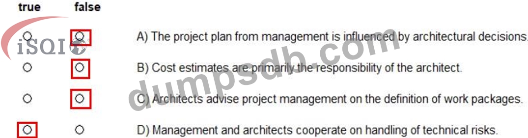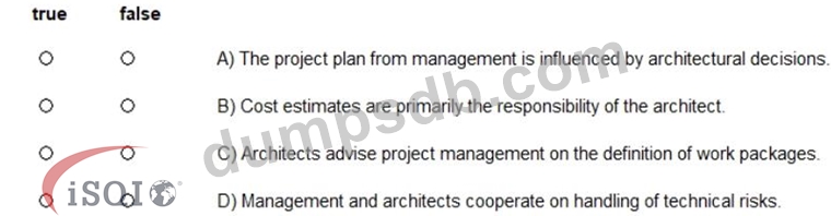 How does management and architects work together? Decide which statements are true and which are false. (Assign all answers.)