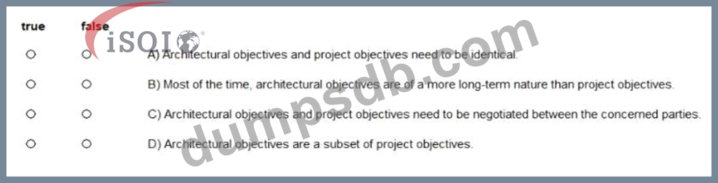 Which statements with regard to project objectives and architectural objectives are true and which are false?