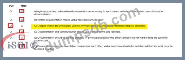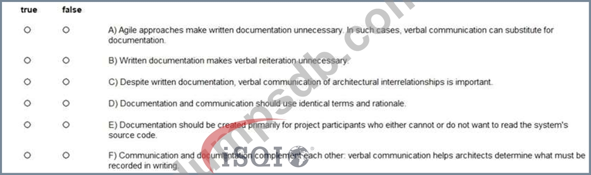 How are written documentation and verbal communication of software architectures related? Please mark the following statements as true or false. (Assign all answers.)