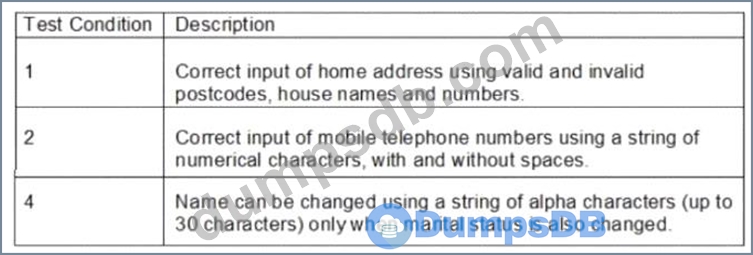 Which one of the following is a valid test condition that is missing from the table of test conditions and has clear traceability back to the test strategy and requirements?