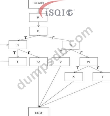 The flow graph below shows the logic of a program for which 100% statement coverage and 100% decision coverage is required on exit from component testing.